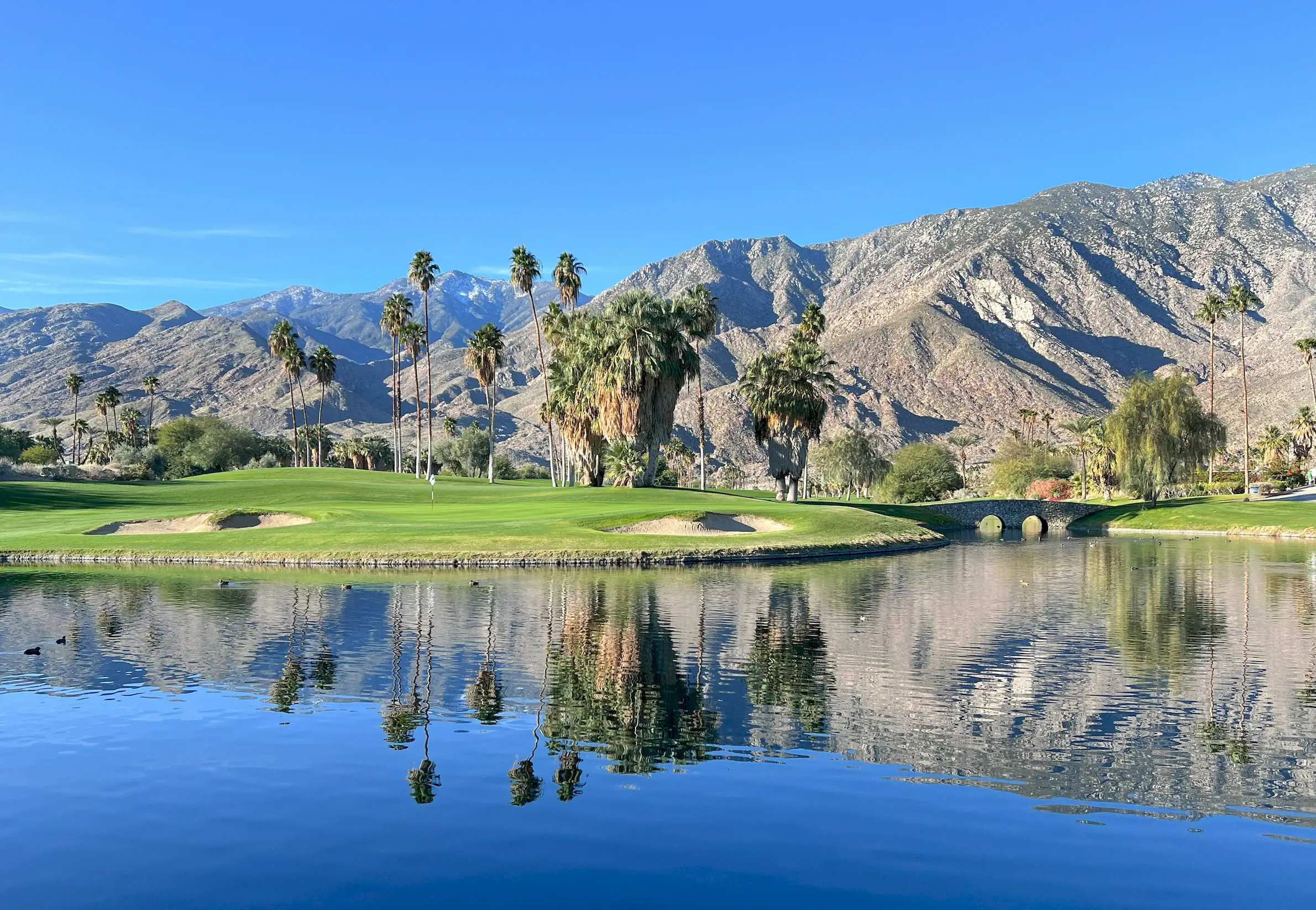 • Climate and setting: Winter days in the 70s and 80s, low humidity, clear desert light, and the Santa Rosa and San Jacinto Mountains framing nearly every view.